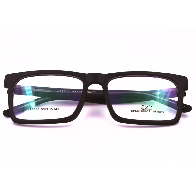 Experience ultimate comfort and durability with the Spectskart Infinity-Premium Matte Black Full Rim Rectangular from Spectskart Infinity. Crafted from premium Acetate material, these glasses offer exceptional flexibility, lightweight design, and long-lasting durability. The sleek Matte Black finish gives a modern and stylish appeal, making them perfect for everyday wear.