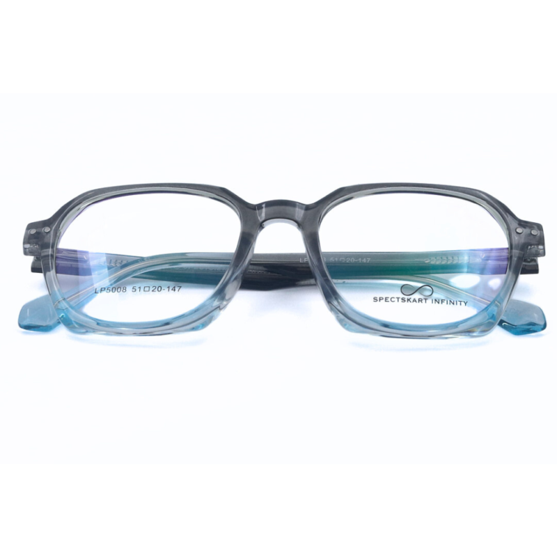 Experience ultimate comfort and durability with the Spectskart Infinity-Premium Grey Blue Gradient Full Rim Hexagon from Spectskart Infinity. Crafted from premium Acetate material, these glasses offer exceptional flexibility, lightweight design, and long-lasting durability. The sleek Grey Blue Gradient finish gives a modern and stylish appeal, making them perfect for everyday wear.