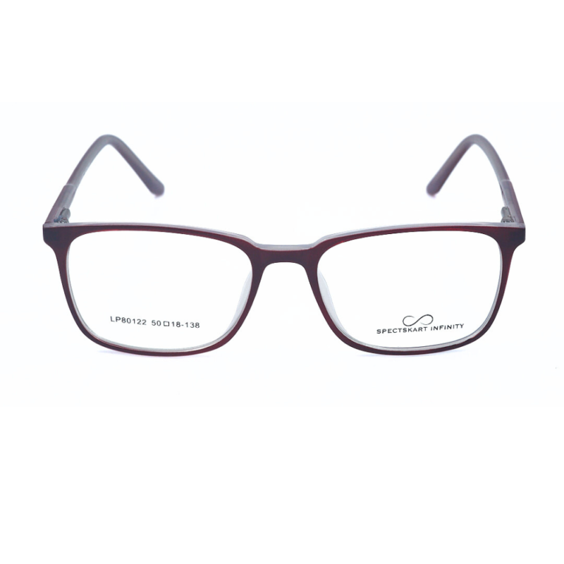Experience ultimate comfort and durability with the Marron Red lite Purple Full Rim Rectangle from Spectskart Infinity. Crafted from premium TR90 and Acetate material, these glasses offer exceptional flexibility, lightweight design, and long-lasting durability. The sleek matte black finish gives a modern and stylish appeal, making them perfect for everyday wear.