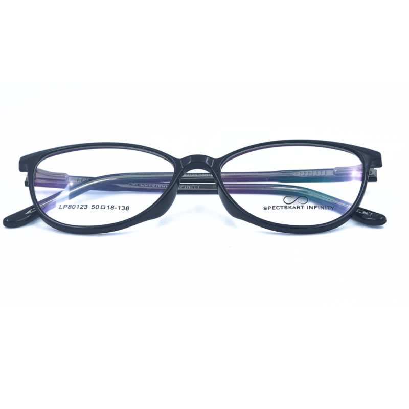 Experience ultimate comfort and durability with the Black Cat-Eye from Spectskart Infinity. Crafted from premium TR90 and Acetate material, these glasses offer exceptional flexibility, lightweight design, and long-lasting durability. The sleek matte black finish gives a modern and stylish appeal, making them perfect for everyday wear.
