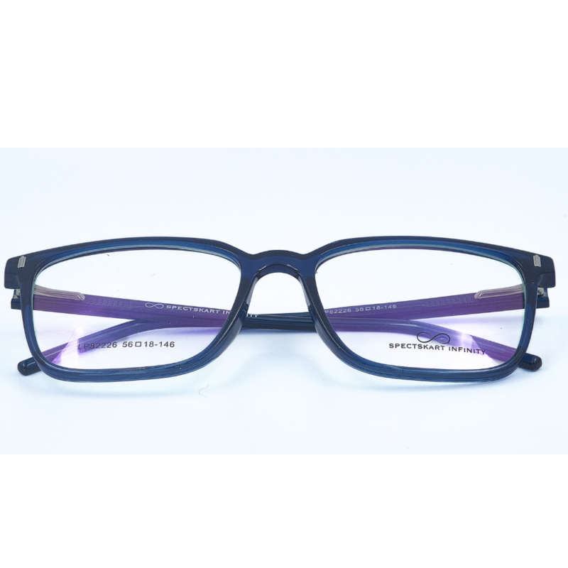 Experience ultimate comfort and durability with the Blue Full Rim Rectangular  from Spectskart Infinity. Crafted from premium TR90 and Acetate material, these glasses offer exceptional flexibility, lightweight design, and long-lasting durability. The sleek matte black finish gives a modern and stylish appeal, making them perfect for everyday wear.