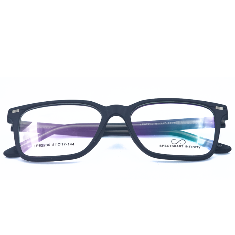Experience ultimate comfort and durability with the Matte Black Full Rim Rectangular  from Spectskart Infinity. Crafted from premium TR90 and Acetate material, these glasses offer exceptional flexibility, lightweight design, and long-lasting durability. The sleek matte black finish gives a modern and stylish appeal, making them perfect for everyday wear.