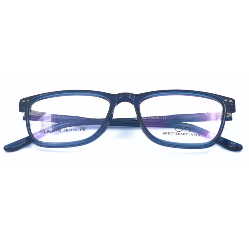 Experience ultimate comfort and durability with the Blue Full Rim Square from Spectskart Infinity. Crafted from premium Acetate material, these glasses offer exceptional flexibility, lightweight design, and long-lasting durability. The sleek Matte Black finish gives a modern and stylish appeal, making them perfect for everyday wear.